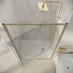 Размеры: 100х195см. Закаленное стекло прозрачное, 6мм.  Распашная дверь. Профиль золото