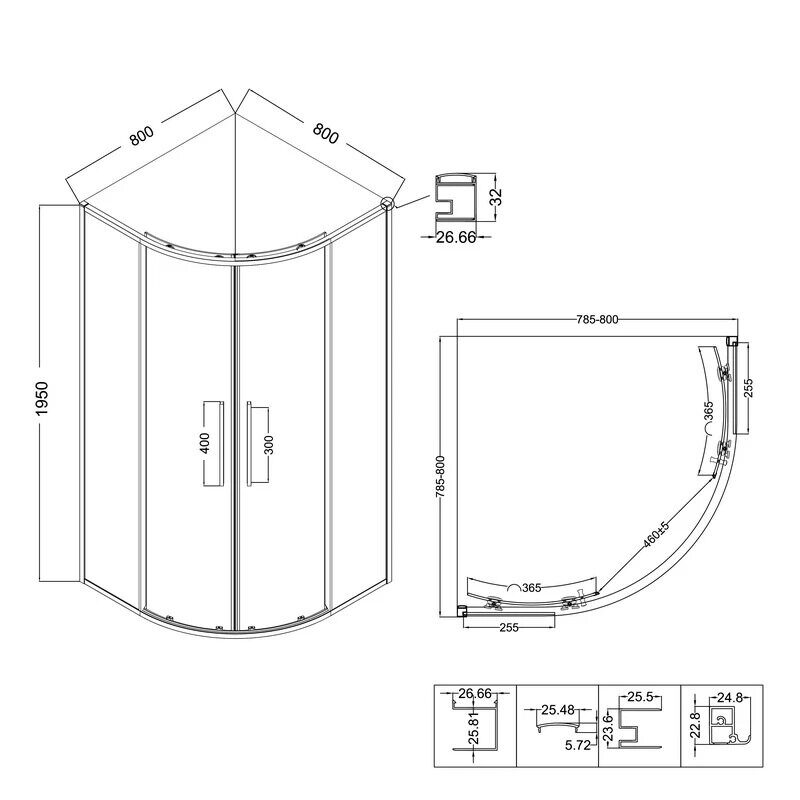 Размеры (мм): 800х800х1950