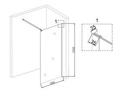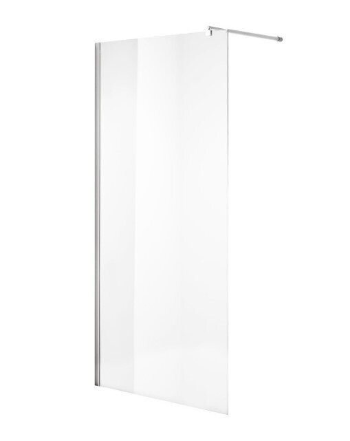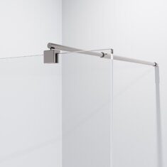 Размеры: 80х190 см. Закаленное прозрачное стекло 6 мм. Профиль алюминиевый, хром. Кронштейн, регулировка по длине, 70-120 см