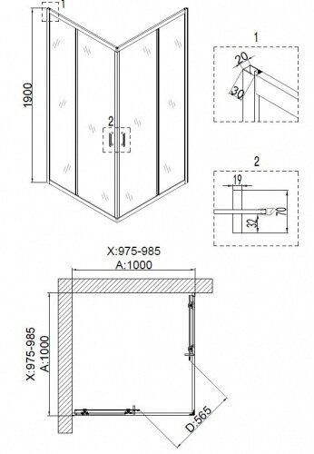 Размеры: 100х100х195см. Закаленное стекло прозрачное, 6мм. Квадратная форма. Раздвижная дверь.