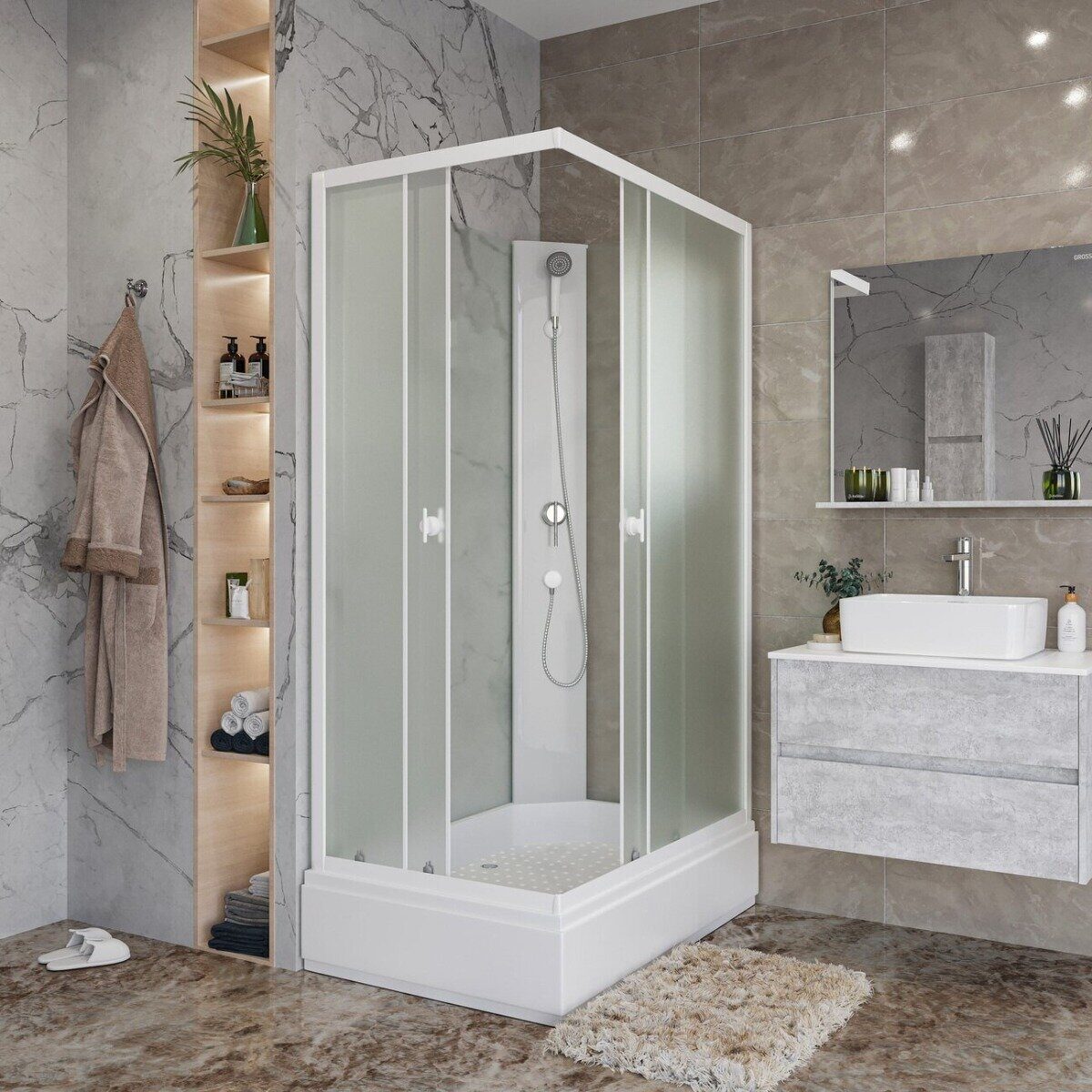 Двери: 2 шт, раздвижные, стекло закаленное матовое - 4мм