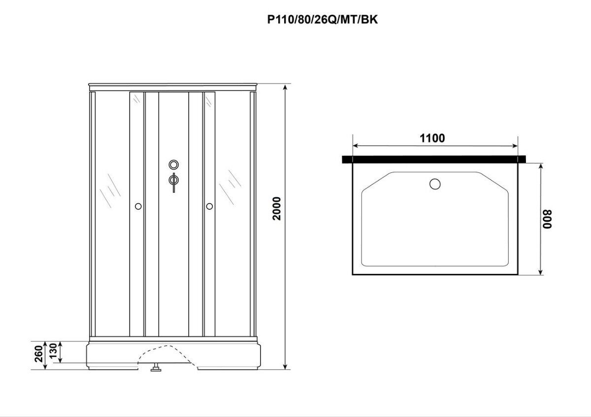 Niagara Promo P110/80/26Q/MT/BK, душевая кабина прямоугольная 110х80х200 см, матовое стекло, средний поддон