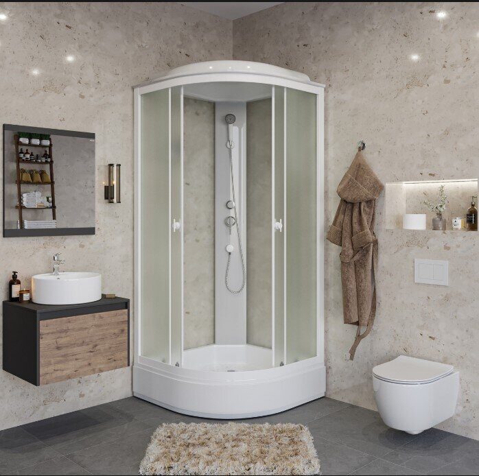 Niagara Promo P90/26/MT, душевая кабина угловая полукруглая 90х90х215 см, матовое стекло, средний поддон