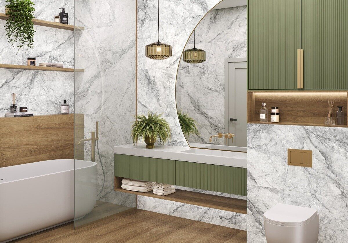 Карвинг-эффект на плитке — это особый вид декоративной обработки поверхности, при котором создаётся тонкий рельеф, имитирующий резьбу или природные узоры. Добавляет плитке визуальную глубину и лёгкое мерцание, подчёркивает текстуру, например, прожилки мрамора, древесные линии или геометрические узоры.
