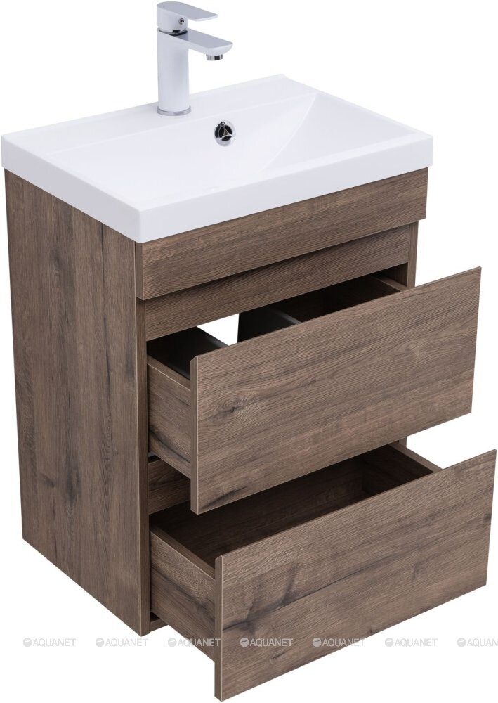 Нота new 50 тумба дуб веллингтон табак для ванной комнаты с раковиной-столешницей Нота 50 Aquanet