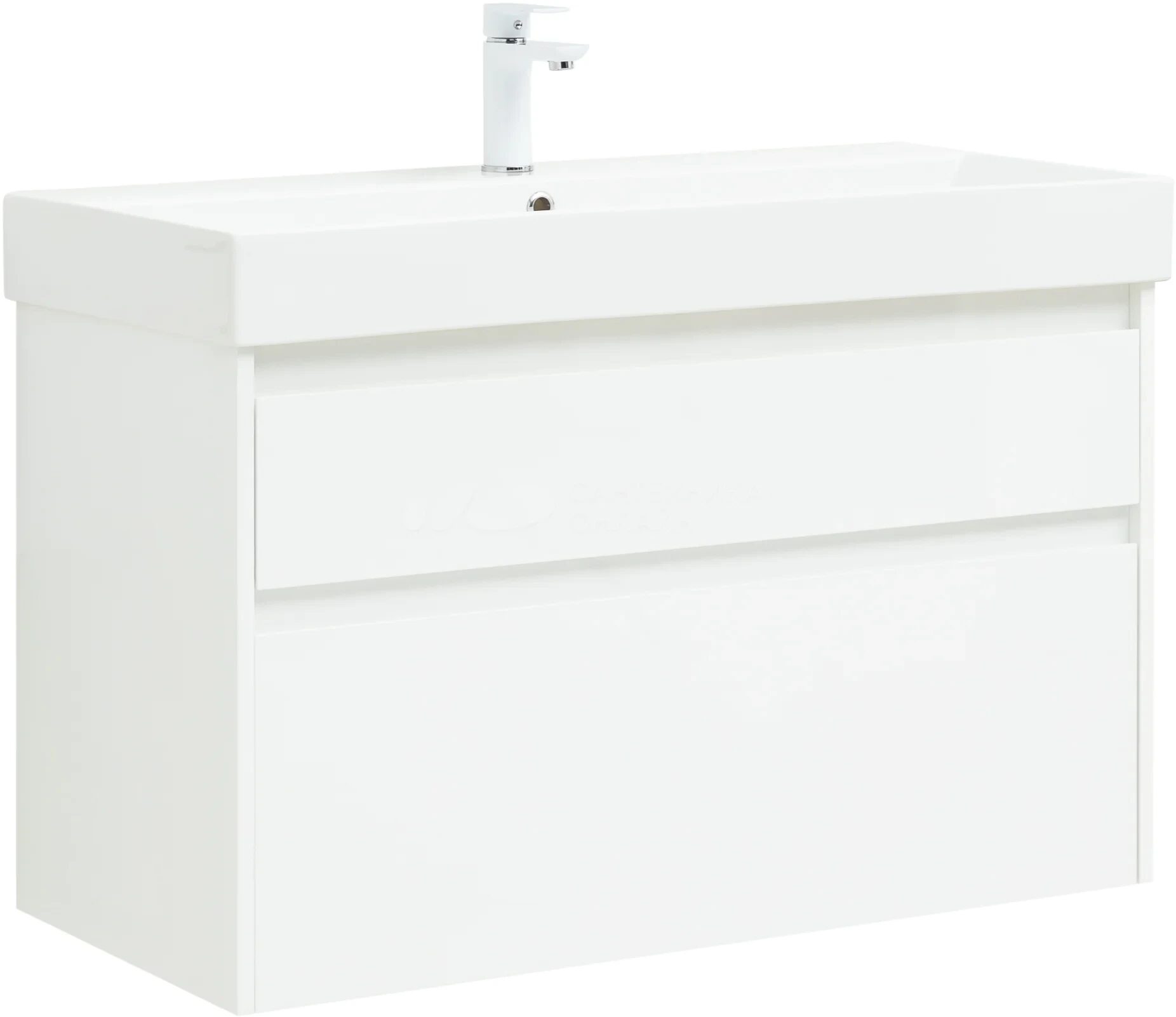 Nova lite 100 тумба белый глянец для ванной комнаты 2 ящика с раковиной-столешницей 100 cm (SLIM SYNERGY) Aquanet