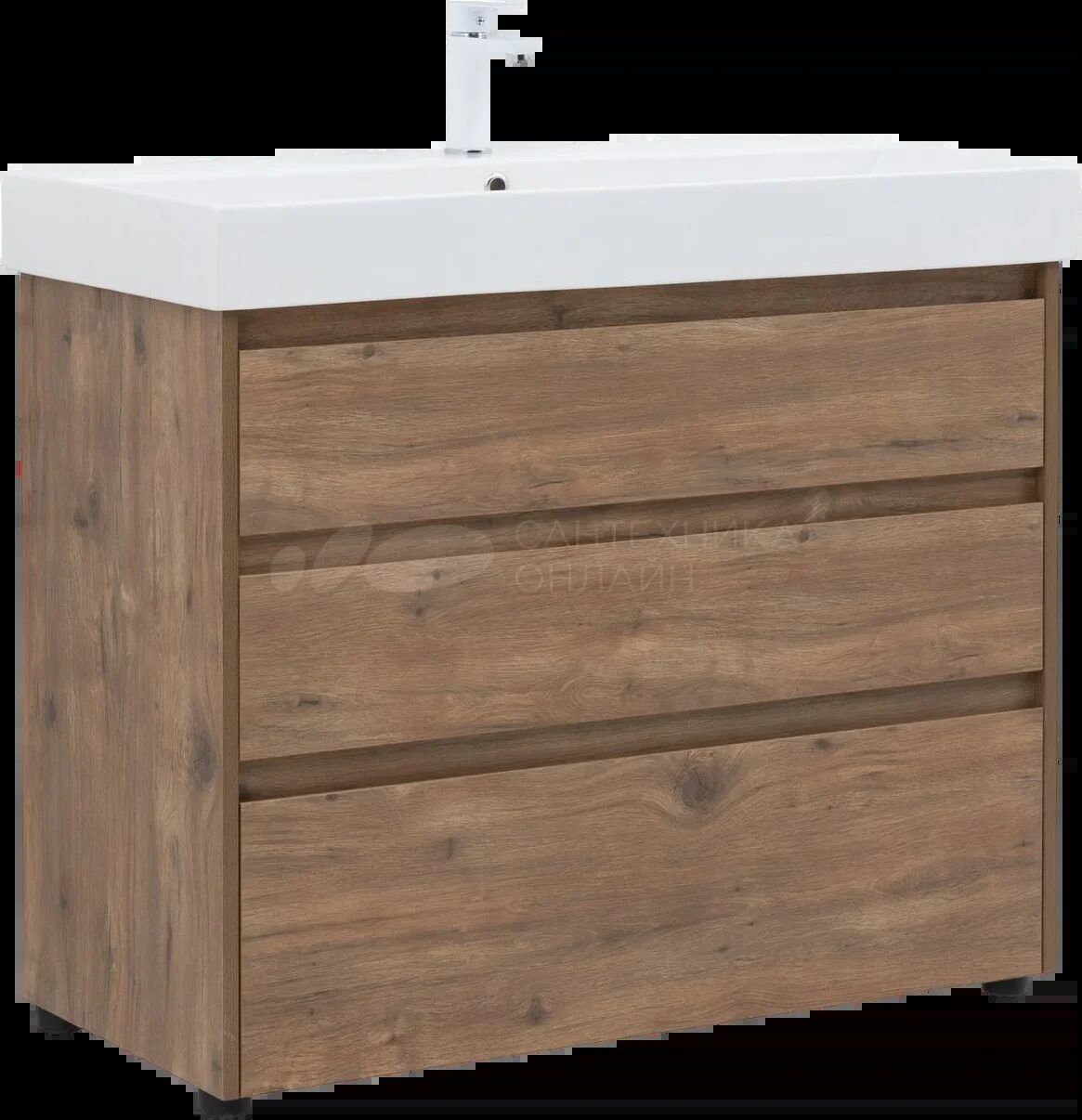 Nova lite 100 тумба дуб рустикальный для ванной комнаты 3 ящика с раковиной-столешницей 100 cm (SLIM SYNERGY) Aquanet