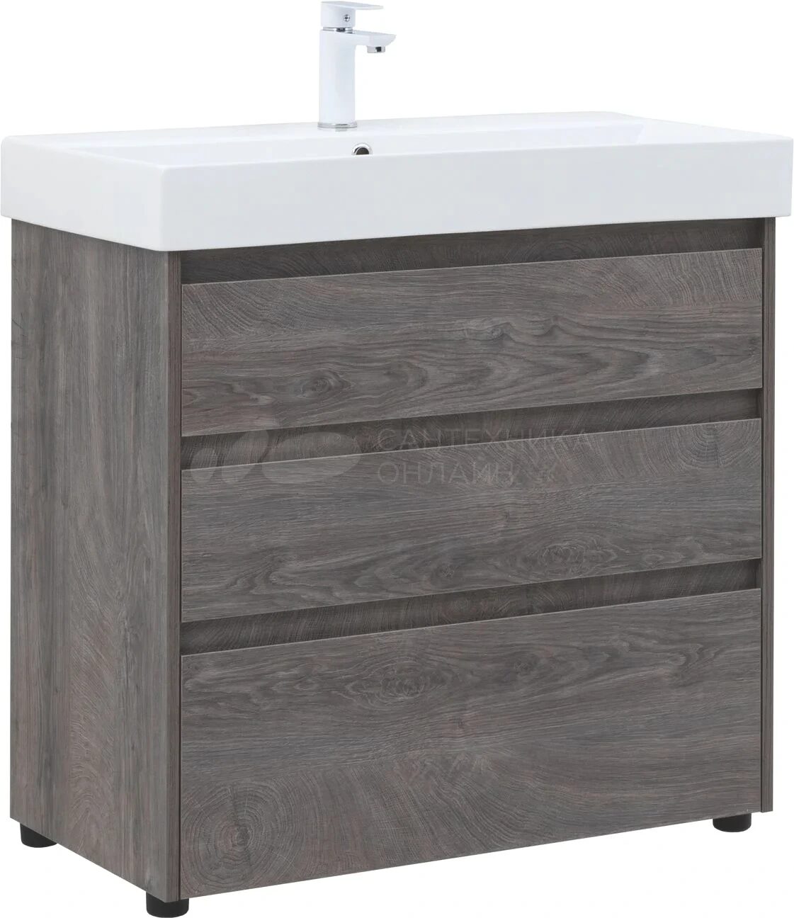 Nova lite 85 тумба дуб рошелье для ванной комнаты 3 ящика с раковиной-столешницей 85 cm (SLIM SYNERGY) Aquanet