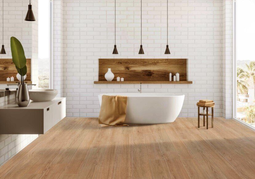 Ваш идеальный пол по доступной цене! Все лучшие преимущества керамогранита (влагостойкость, прочность), но более мягкая и тактильно приятная поверхность и ламината (дизайн, достоверно имитирующий дерево, удобство укладки), при отсутствии "барабанного" шума и неустойчивости к влажности.
