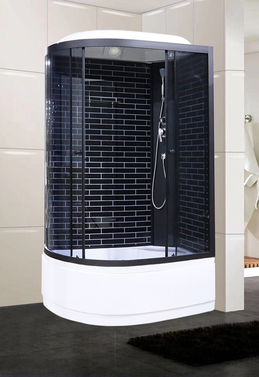 Главная Каталог магазина Сантехника Душевые кабины, углы, двери, ограждения, поддоны Душевые кабины ODA 5006 черный кирпич L(R) душевая кабина 120х80см тонированное стекло, глубокий поддон