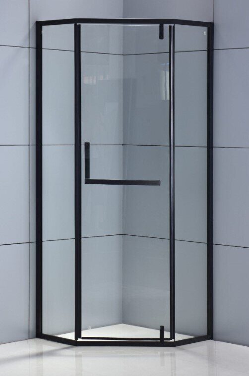 Размеры: 90х90х215см.  Закаленное стекло прозрачное, 8мм.  Трапециевидная форма. Одна распашная дверь. Монтаж: на пол, на поддон