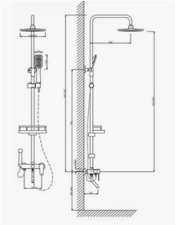 Omega 7702 душевая система со смесителем, верхним, ручным и гигиеническим душем