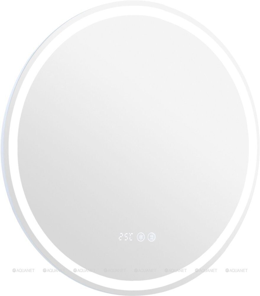 Размеры: 60х3х60 см. Цвет: белый. Функции: Антизапотевание / Подсветка / Сенсорный выключатель / Часы