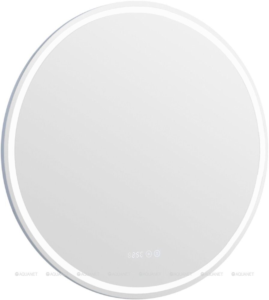 Размеры: 80х3х80 см. Цвет: белый. Функции: Антизапотевание / Подсветка / Сенсорный выключатель / Часы
