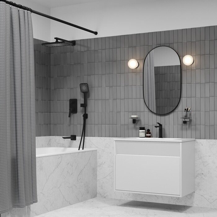 Встраиваемая душевая система Parker в чёрном матовом цвете – практичная и стильная, её дизайн сочетает в себе трендовый минимализм форм и четкие грани. Готовый комплект включает всё необходимое для создания уютного и функционального пространства: смеситель, верхняя лейка с кронштейном для тропического душа, настенный излив, большая ручная лейка с 3 режимами, душевой шланг 1,5 м и выход для подключения шланга с держателем.