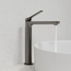 Смеситель Parker в матовом графитовом цвете – практичный и стильный, его дизайн сочетает в себе трендовый минимализм форм и четкие грани. Ручка изящно смотрит вверх под углом, освобождая под собой место для более удобного захвата. Высота 222 мм позволяет с комфортом использовать его с накладными умывальниками.