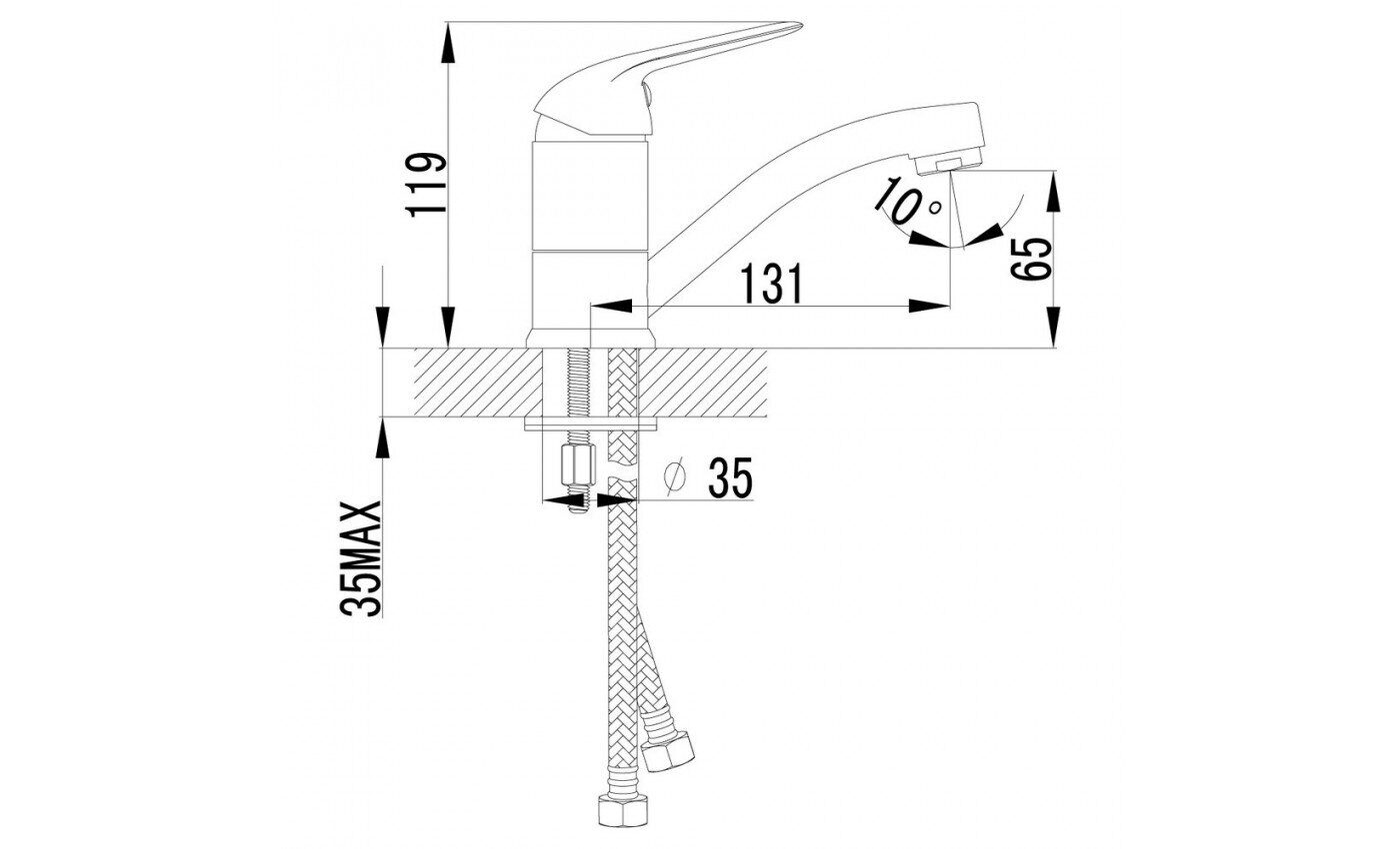Комплект: Смеситель, подводка. Управление - рычажное.