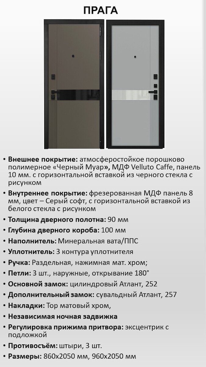 Прага дверь входная стальная Черный муар, МДФ Velluto Caffe , МДФ Серый софт