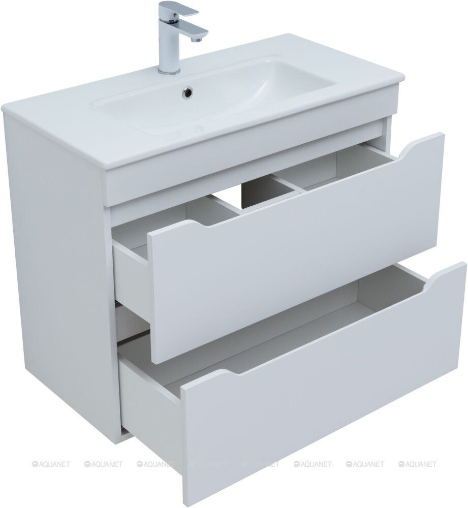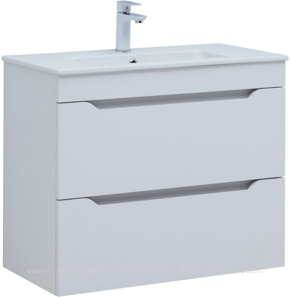 Практика 80 тумба белая матовая для ванной комнаты 2 ящика с раковиной-столешницей 80 cm (PRACTICO) Aquanet