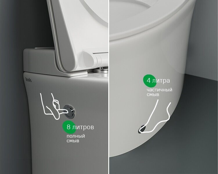 Объем бачка: определяется системой инсталляции