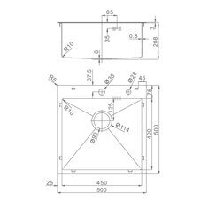 Размер: 50х50см. Высота 21,5см. Глубина 20,8см. Материал: нержавеющая сталь. Цвет сатин.
