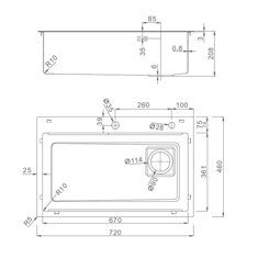 Размер: 72х46см. Высота 21,5см. Глубина 20,8см. Материал: нержавеющая сталь. Цвет графит.
