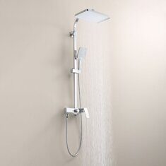 Высота 165см. Верхний душ 31,5х20,8см. Назначение: для душа, для ванны. Материал: латунь. Держатель лейки на стойке. Цвет: хром