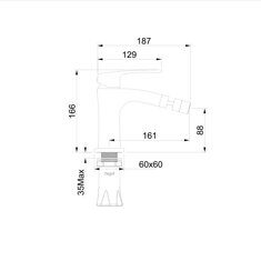 Высота: 16.6см. Длина излива 16.1см. Назначение: для биде. Способ монтажа: на одно отверстие.  Цвет: хром