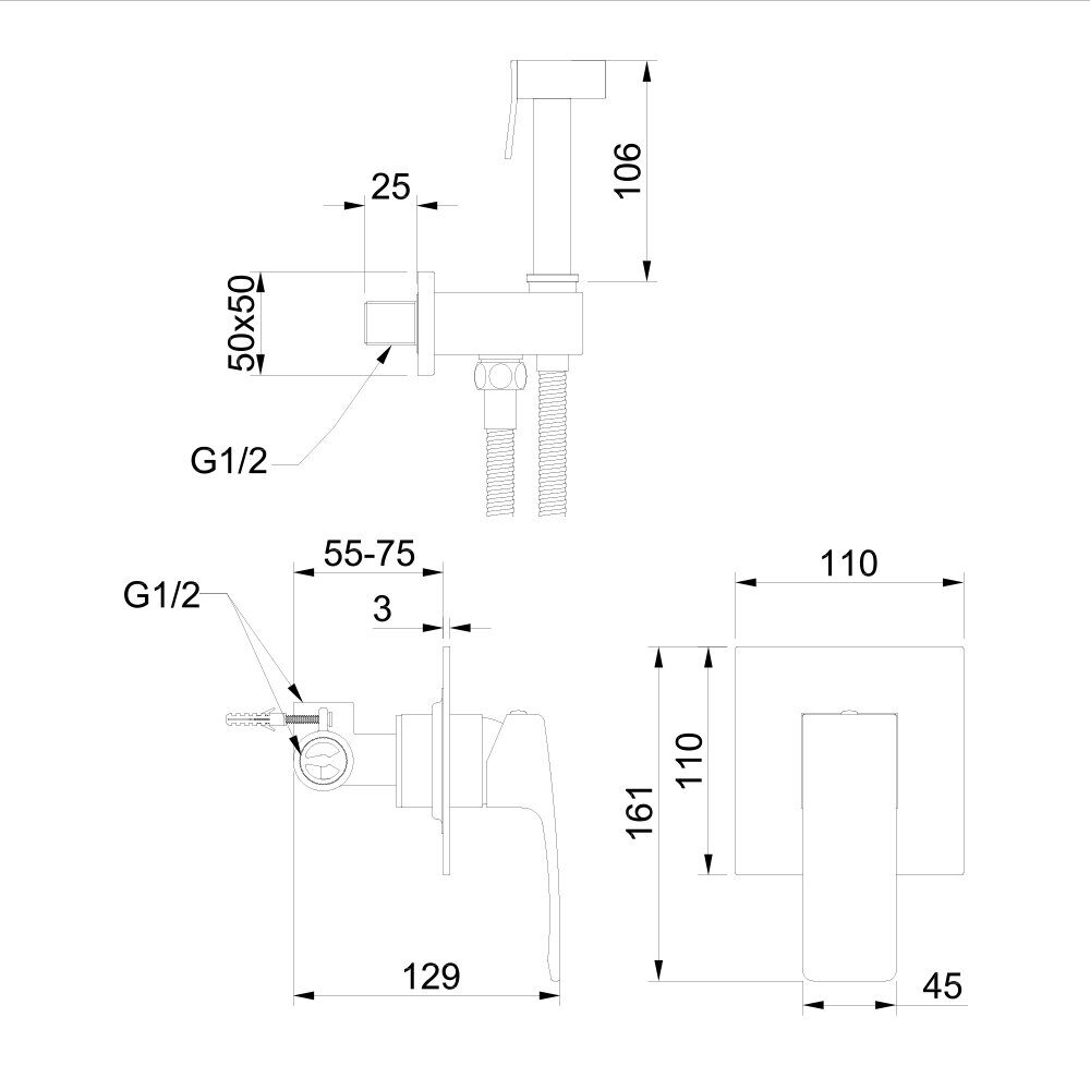 Гибкий шланг, Настенный держатель для лейки, Гигиеническая лейка