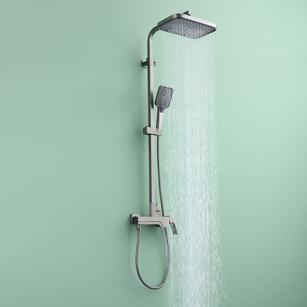 Высота 165см. Верхний душ 31,5х20,8см. Назначение: для душа, для ванны. Материал: латунь. Держатель лейки на стойке. Цвет: графит