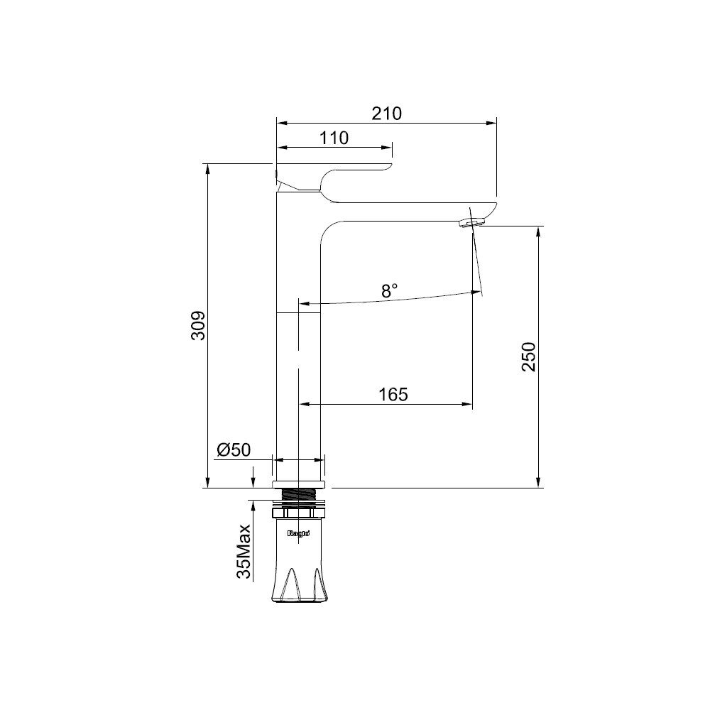 Высота излива, мм 250