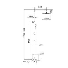 Высота 156,5см. Верхний душ 25,5х25,5см. Назначение: для душа, для ванны. Материал: латунь. Держатель лейки на стойке. Цвет: хром