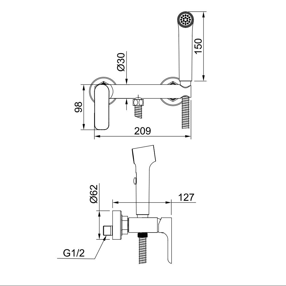 Главная Каталог магазина Сантехника Смесители Raglo R03.51.09 смеситель с гигиеническим душем, графит