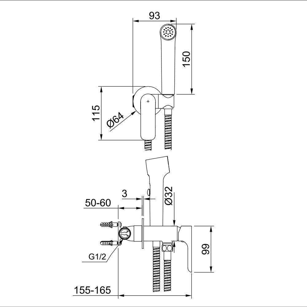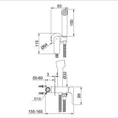 Ширина: 9,3см. Длина шланга 120см. Материал корпуса латунь. Способ монтажа: на одно отверстие. Лейка 1 режим. Цвет: хром.