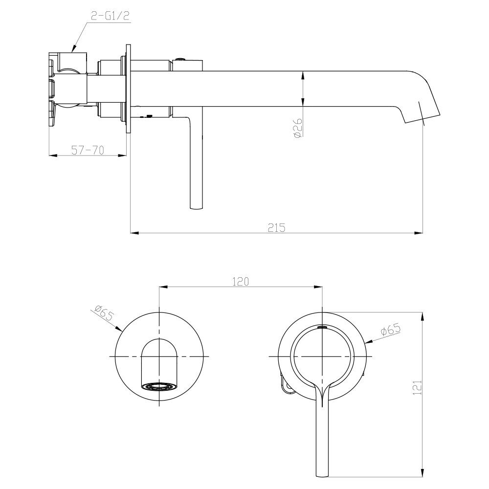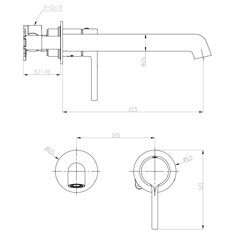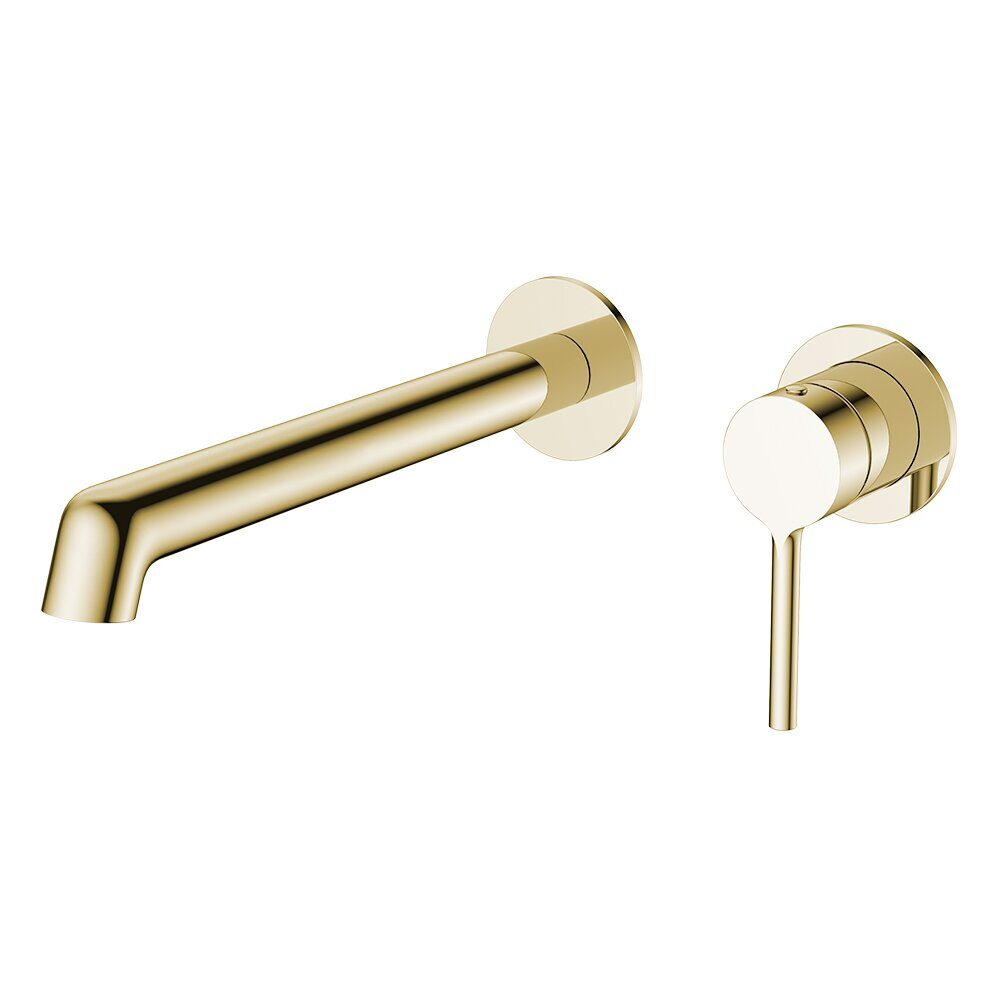 Длина излива: 21.5см. Назначение: на стену. Материал: латунь. Способ монтажа: на два отверстия. Цвет: сатин золотой