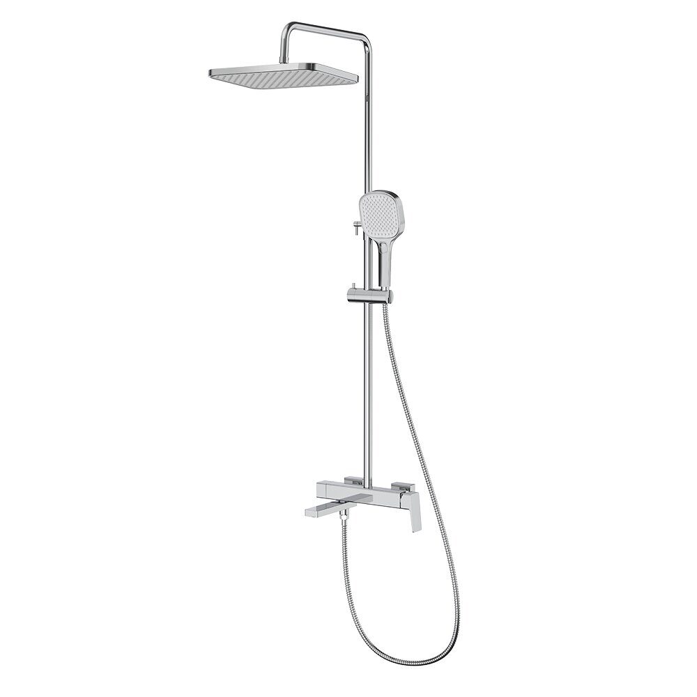 Высота 156,5см. Верхний душ 25,5х25,5см. Назначение: для душа, для ванны. Материал: латунь. Держатель лейки на стойке. Цвет: хром