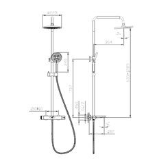 Высота 142,5см. Верхний душ 26х26см. Назначение: для душа, для ванны. Материал: латунь. Держатель лейки на стойке. Цвет: хром
