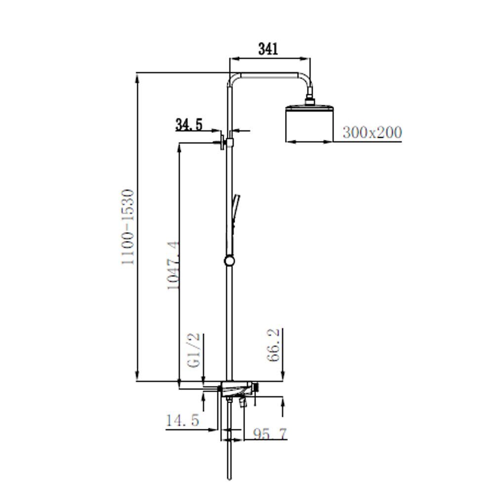 Высота 153см. Верхний душ 30х20см. Назначение: для душа, для ванны. Материал: латунь. Держатель лейки на стойке. Цвет: хром