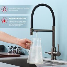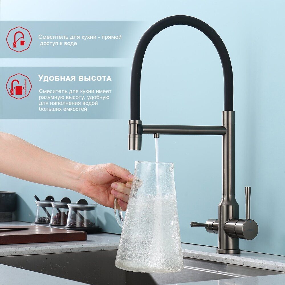 Raglo R81.63.09 смеситель для кухни со съемным изливом на магните и подключением фильтра питьевой воды, графит