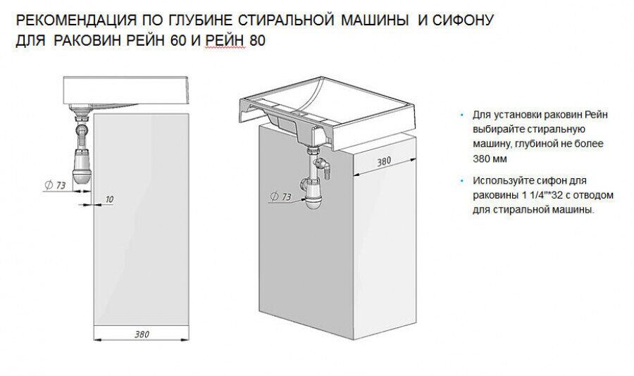 Главная Каталог магазина Сантехника Раковины/Умывальники Рейн 80 раковина из литого мрамора для монтажа над стиральной машиной 80х50см Aquaton