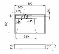 Раковина:  длина - 450мм, ширина - 550мм, высота -169
