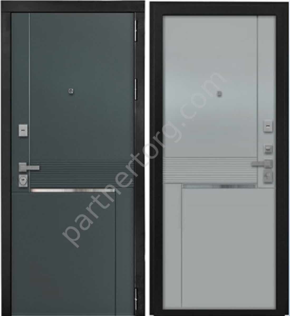 Рига дверь входная стальная Черный муар, МДФ Лайт грей нубук, МДФ Веллюто оскуро