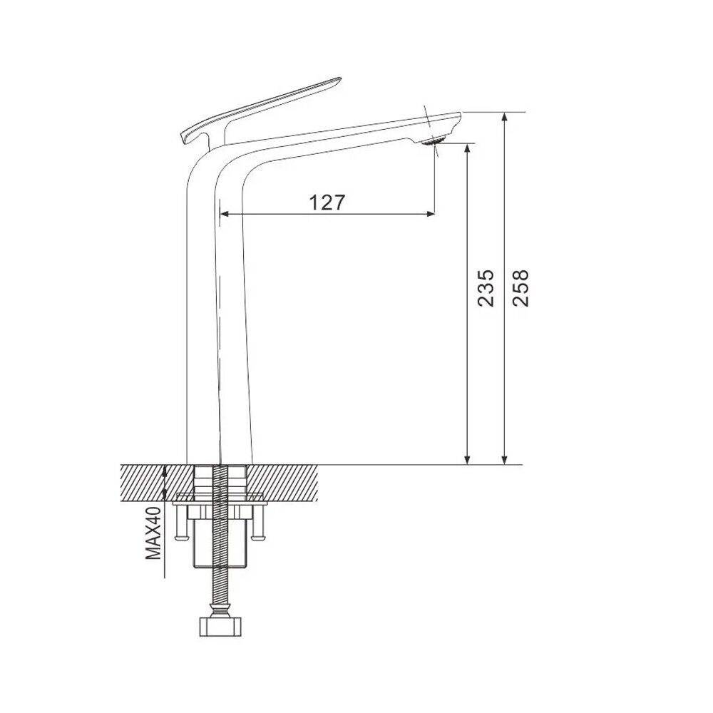 Высота: 23.5 см. Длина излива 12.7 см. Назначение: для раковины. Способ монтажа: на одно отверстие.  Цвет: хром