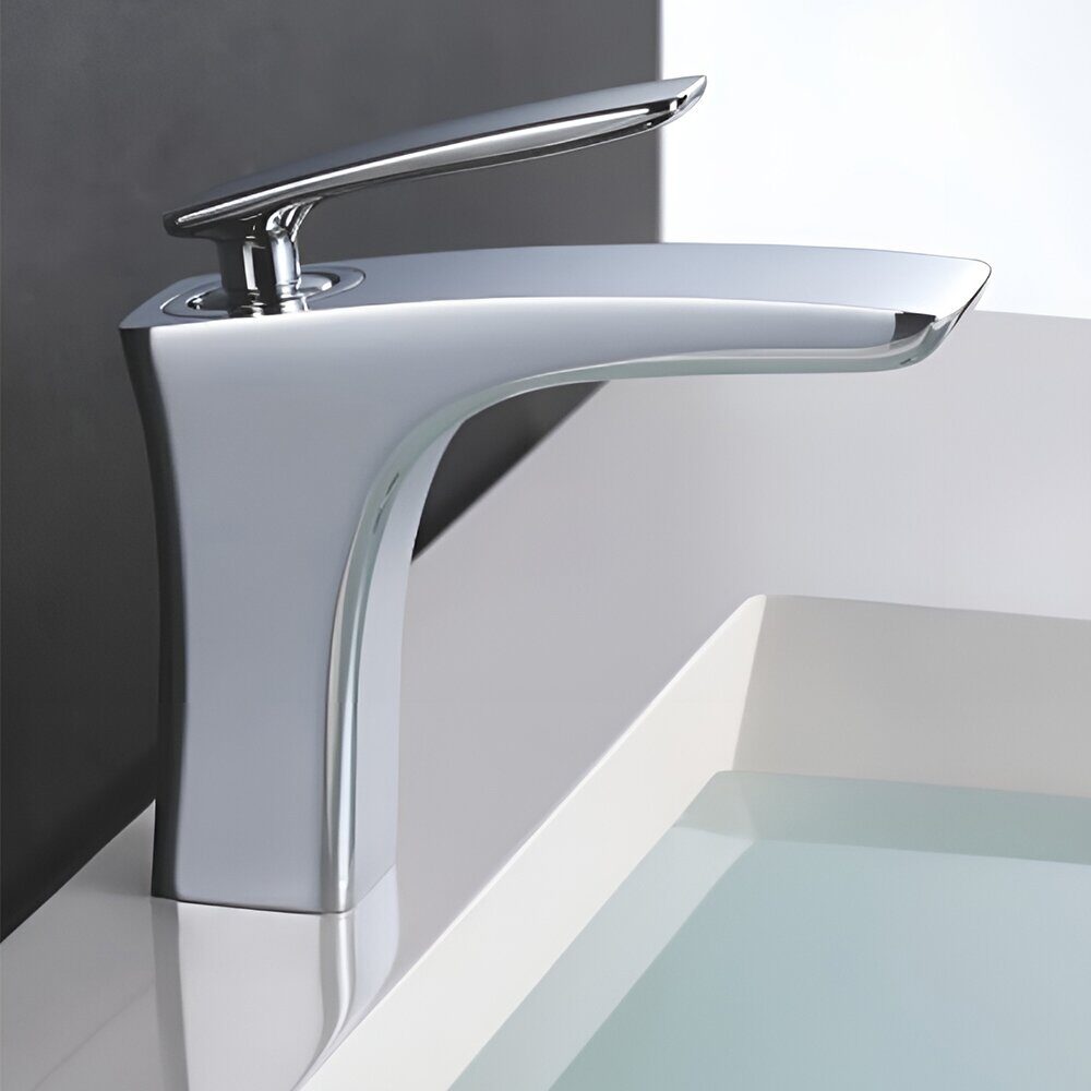 Высота: 12.4 см. Длина излива 12.9 см. Назначение: для раковины. Способ монтажа: на одно отверстие.  Цвет: хром