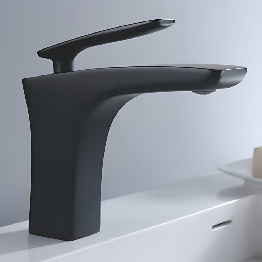 Высота: 12.4 см. Длина излива 12.9 см. Назначение: для раковины. Способ монтажа: на одно отверстие.  Цвет: черный