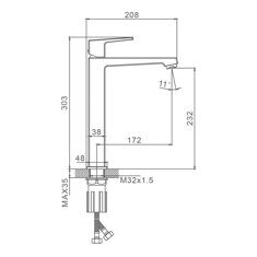 Высота: 30,3 см. Высота излива: 23,2см. Длина излива 17,2 см. Назначение: для раковины. Картридж: керамика 26 мм. Способ монтажа: на одно отверстие. Цвет: Черный