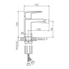 Высота: 15,8 см. Высота излива: 9,8 см. Длина излива: 12,6 см. Материал: латунь. Картридж: керамика 26 мм. Назначение: для биде. Способ монтажа: на одно отверстие. Цвет: Черный