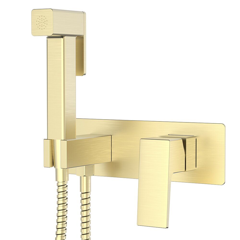 Главная Каталог магазина Сантехника Смесители S01.52.03 Splenka Смеситель с гигиеническим душем встраиваемый, сатин золотой
