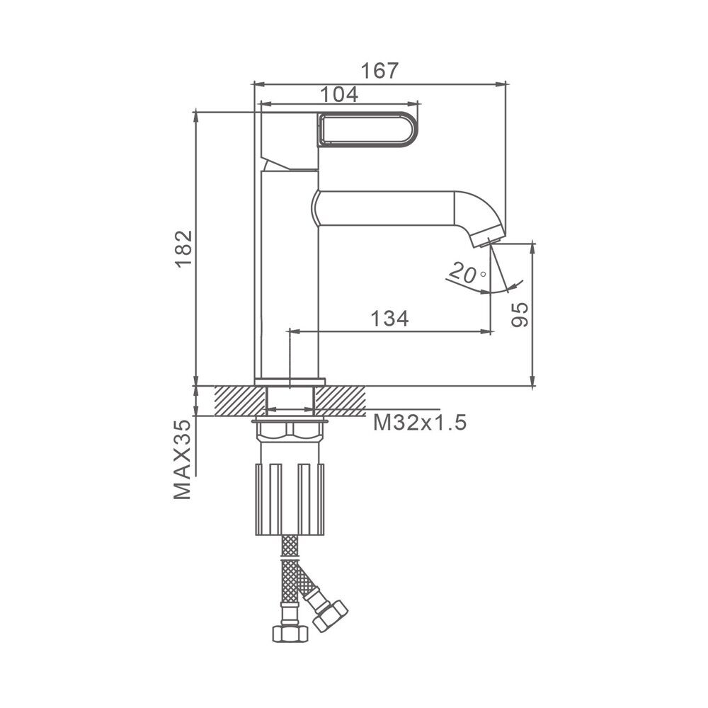 Высота: 15,8 см. Длина излива: 11,3 см. Материал: латунь. Картридж: керамика 35 мм. Способ монтажа: на раковину. Цвет: Хром