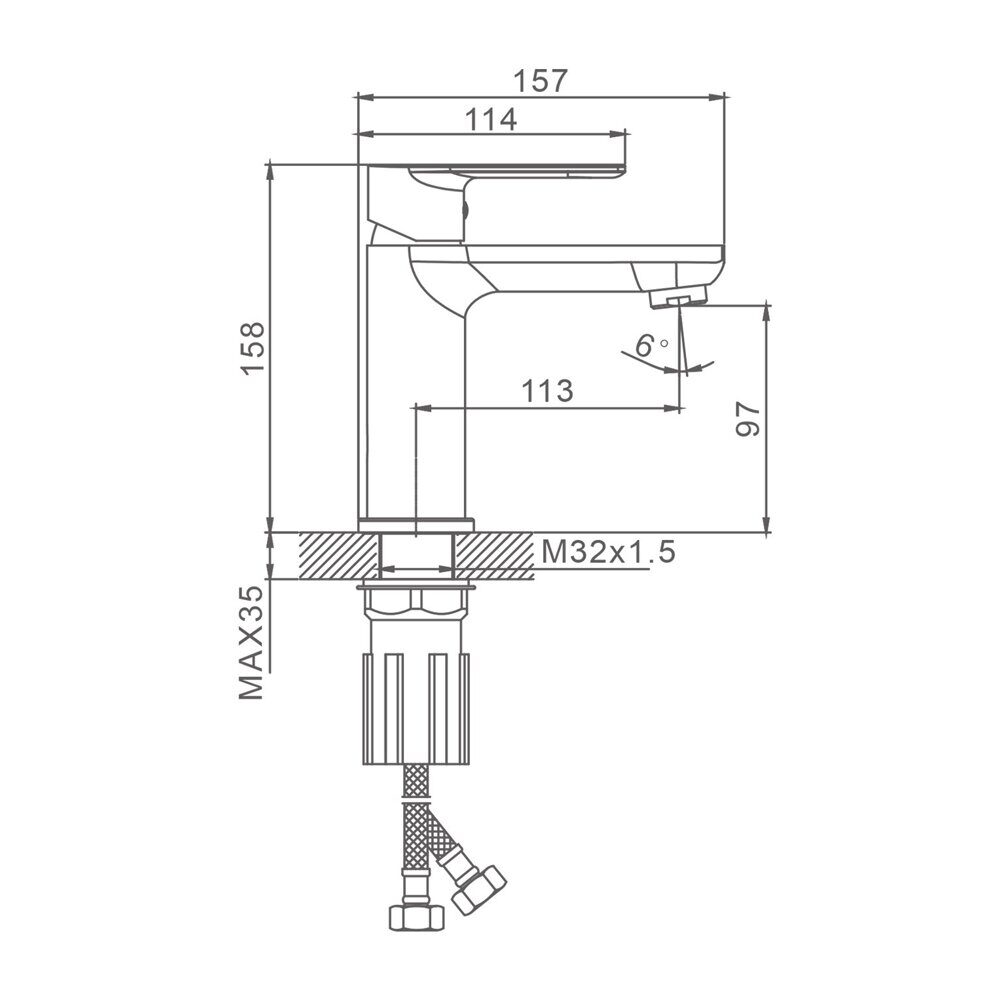 Высота: 15,8 см. Длина излива: 11,3 см. Материал: латунь. Картридж: керамика 35 мм. Способ монтажа: на раковину. Цвет: Черный